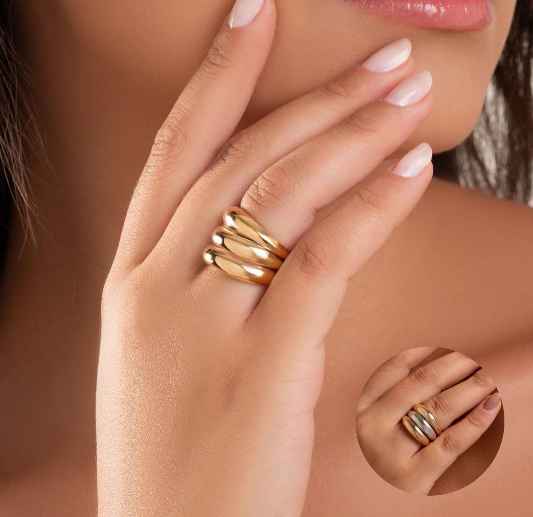 Anel Trio Liso Dourado Regulável