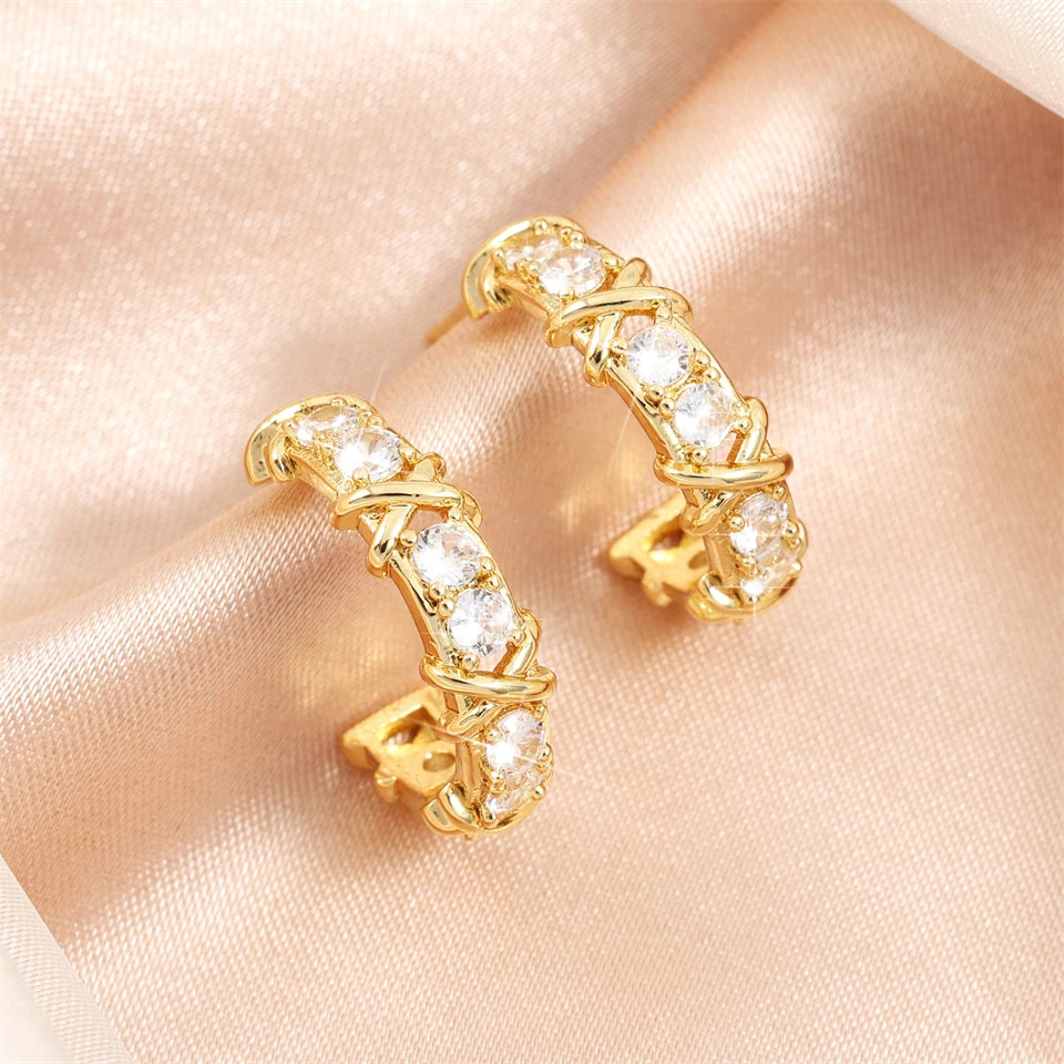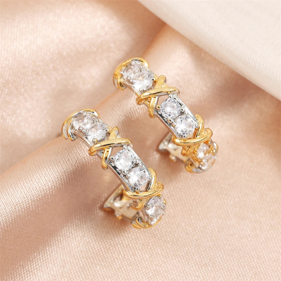 Brinco Argola Cravejada Zircônia com Dourado