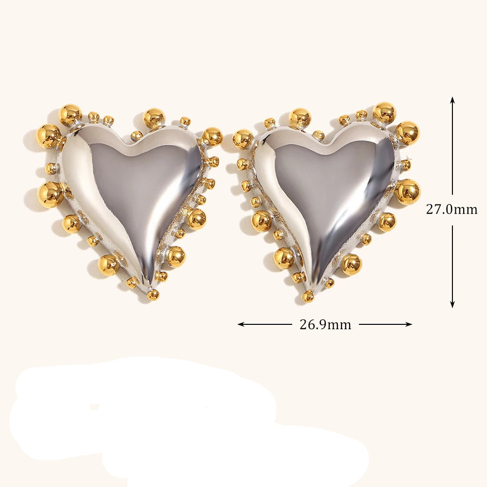 Brinco em Forma de Coração Prata com Bolas Douradas