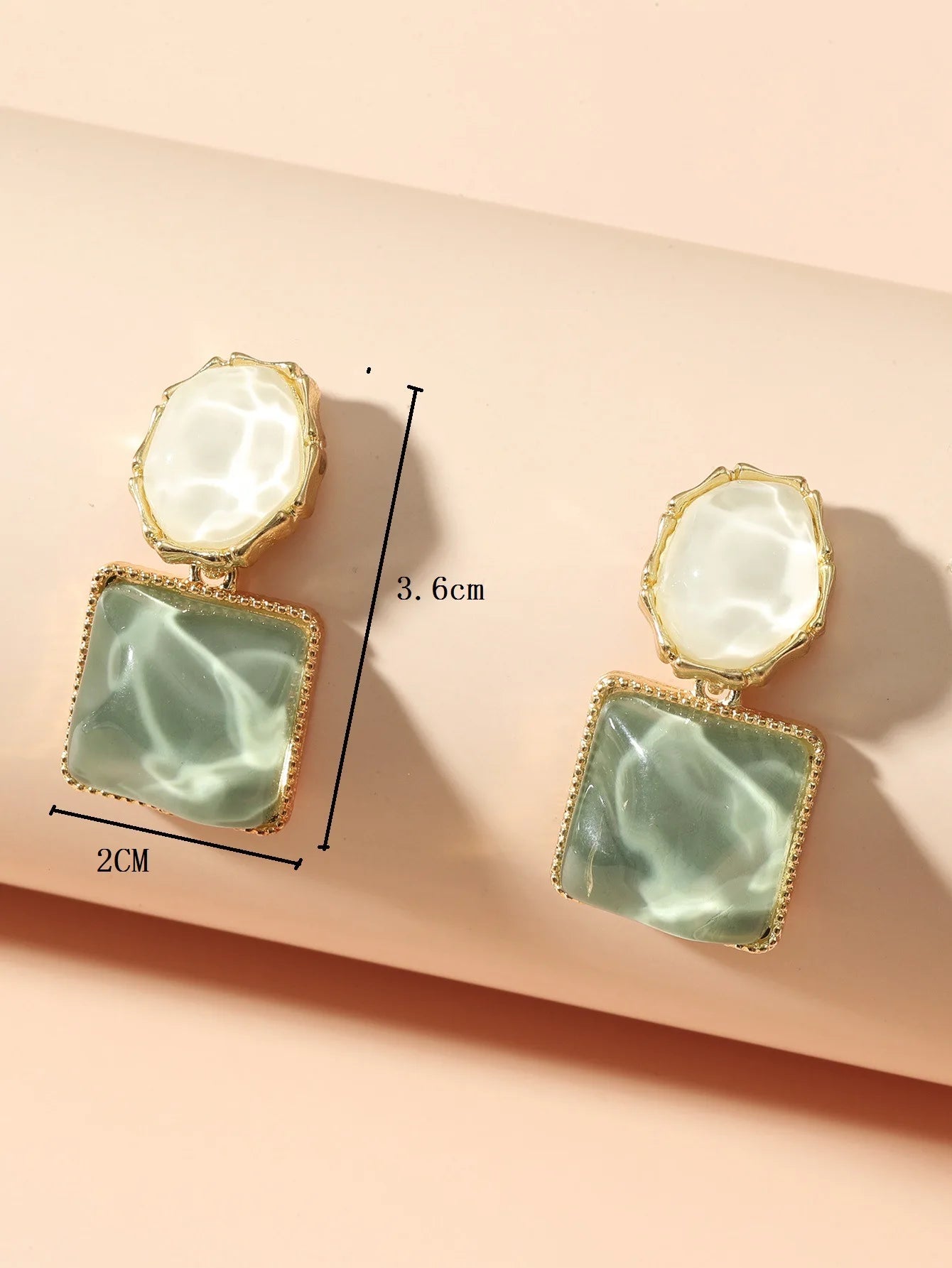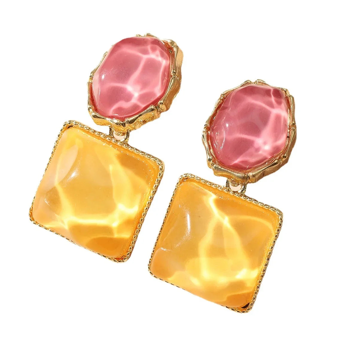 Brinco Geométrico Dourado com Pedra Marmorizada