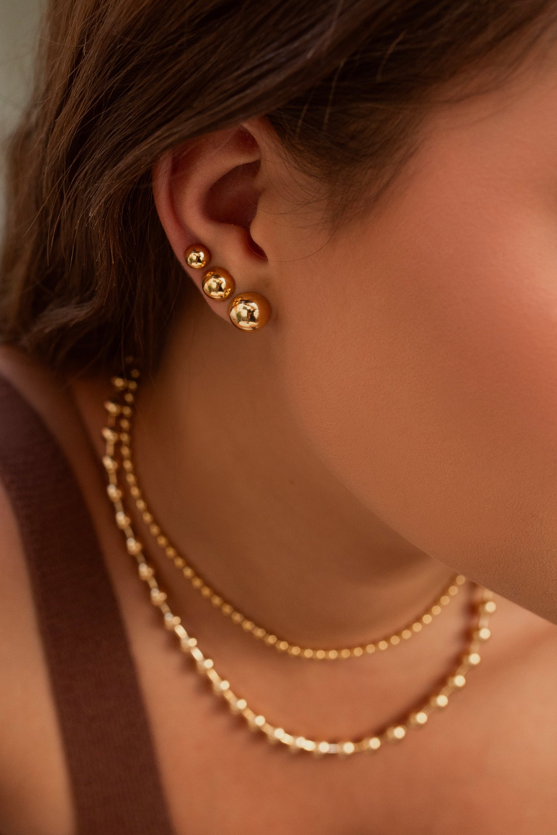 Brinco Trio Bola Lisa Dourado